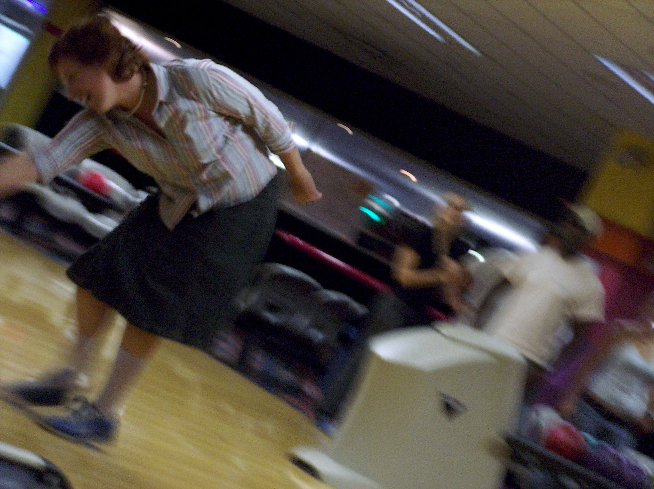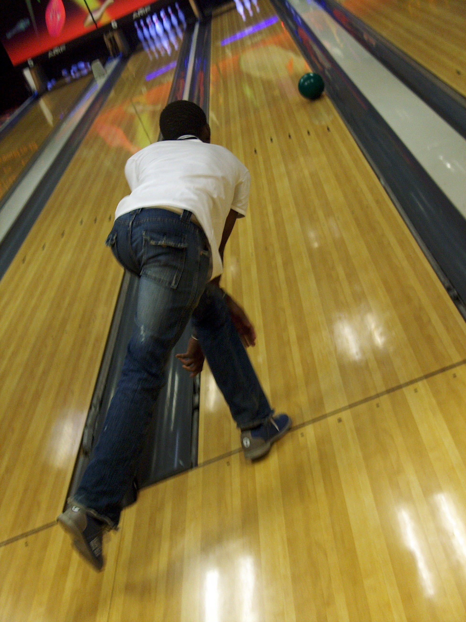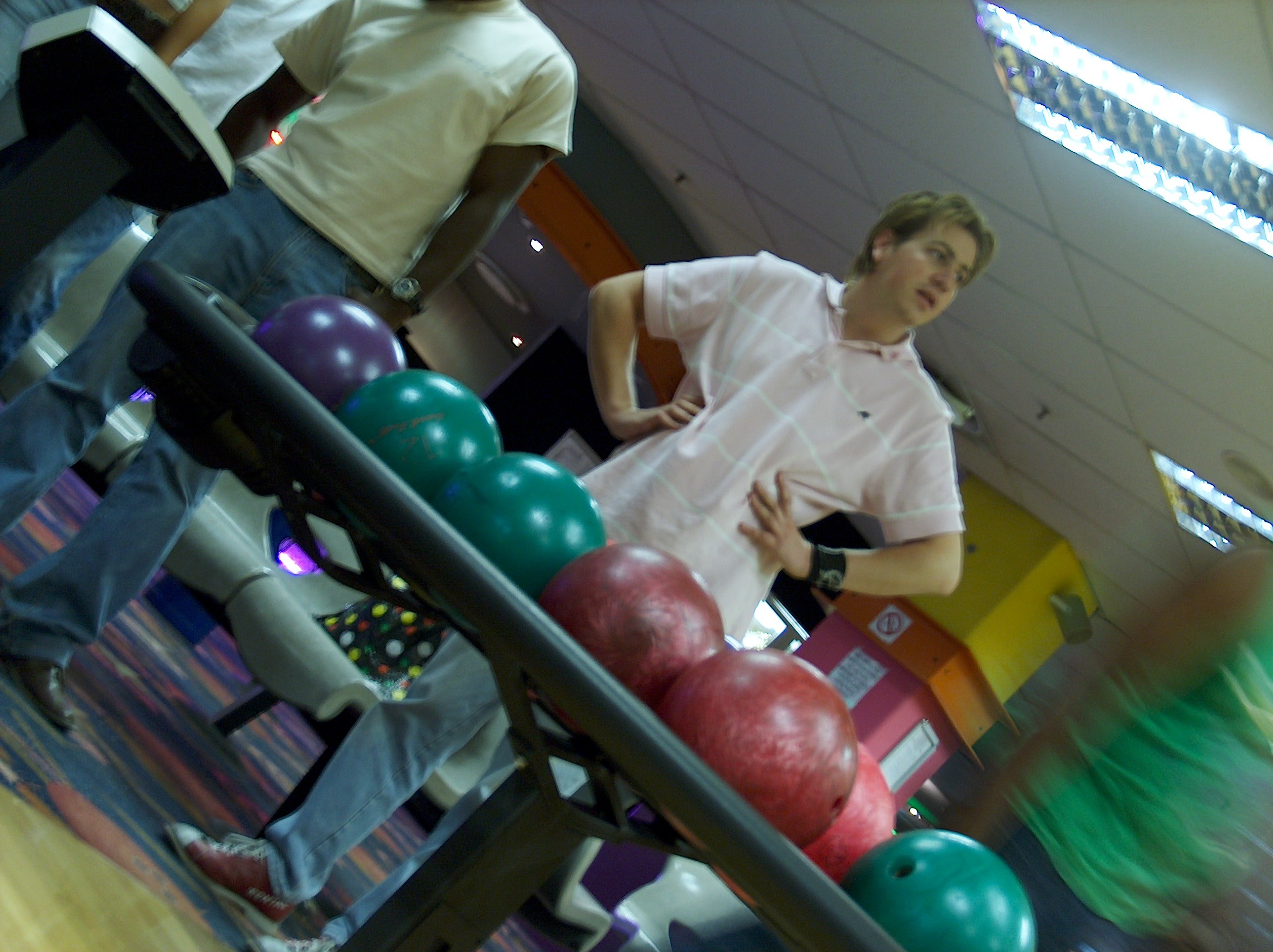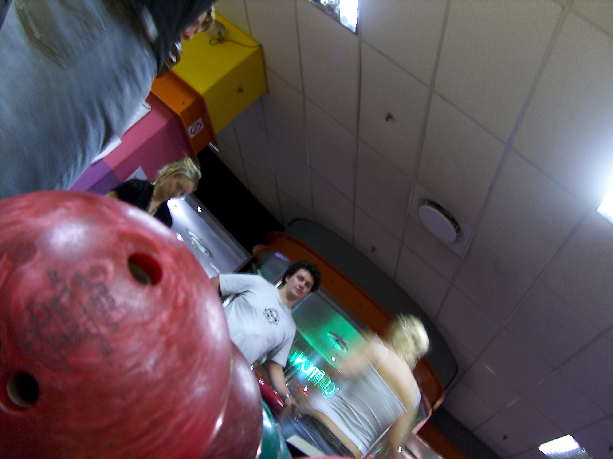 The bowling alley is inside an arcade in the Mall. The lighting is dim, and the environment is noisy, with the ambient sounds of pin’s falling and shooting games, and sudden bells ringing. There is a constant background hum of ‘musac’ to try softening the din created by all those arcade games. Upon arrival at the bowling alley, we were asked to perform several tasks, including purchase tickets at one counter and then receive “bowling shoes” from another counter, with the tickets we had just purchased. The receptionist divided the group into two, because there were too many of us to use just one alley. Interestingly, these two groups [created arbitrarily by the receptionist] at once behaved in competition with each other, even though we were not engaging in competitive sports.