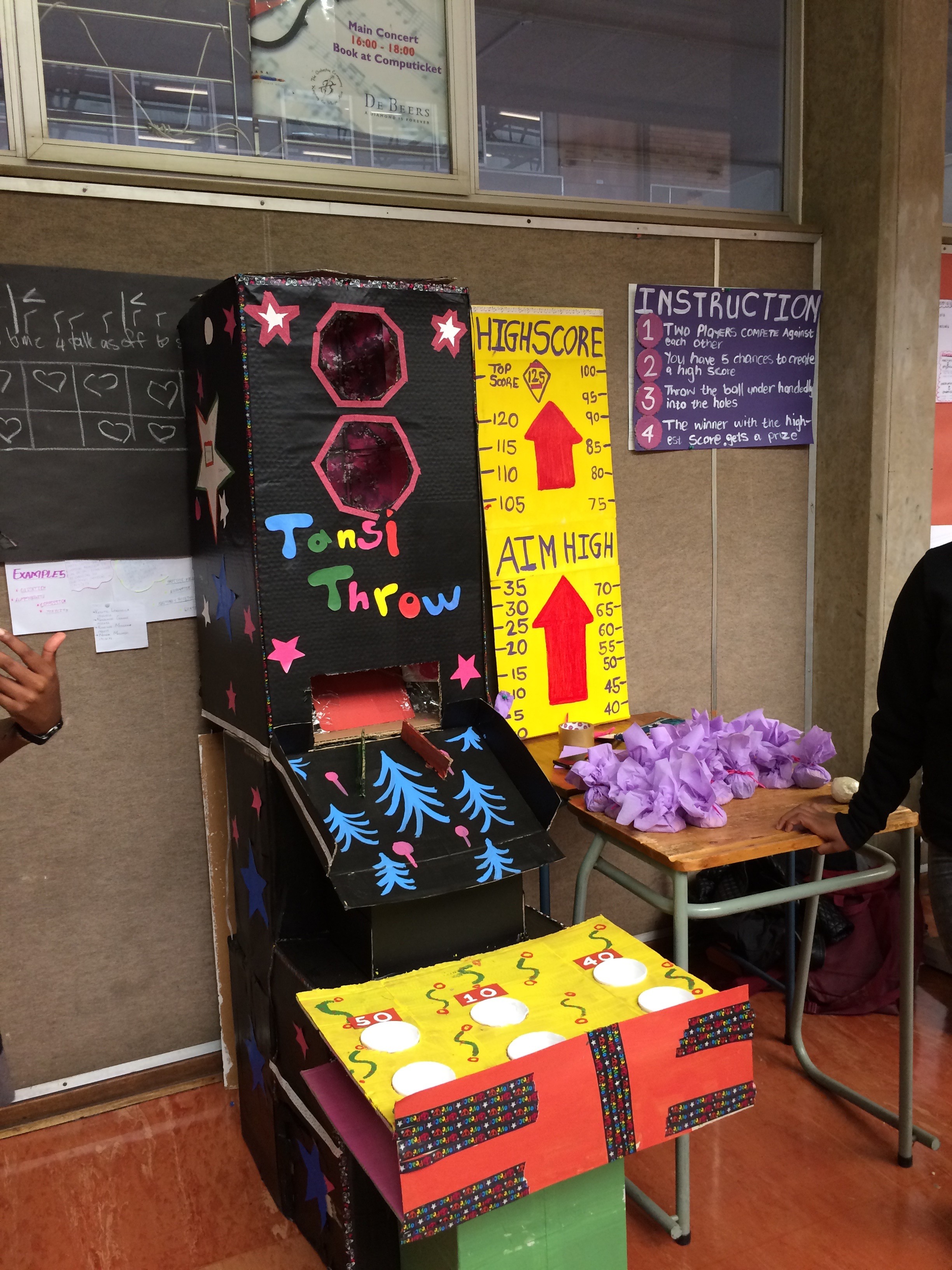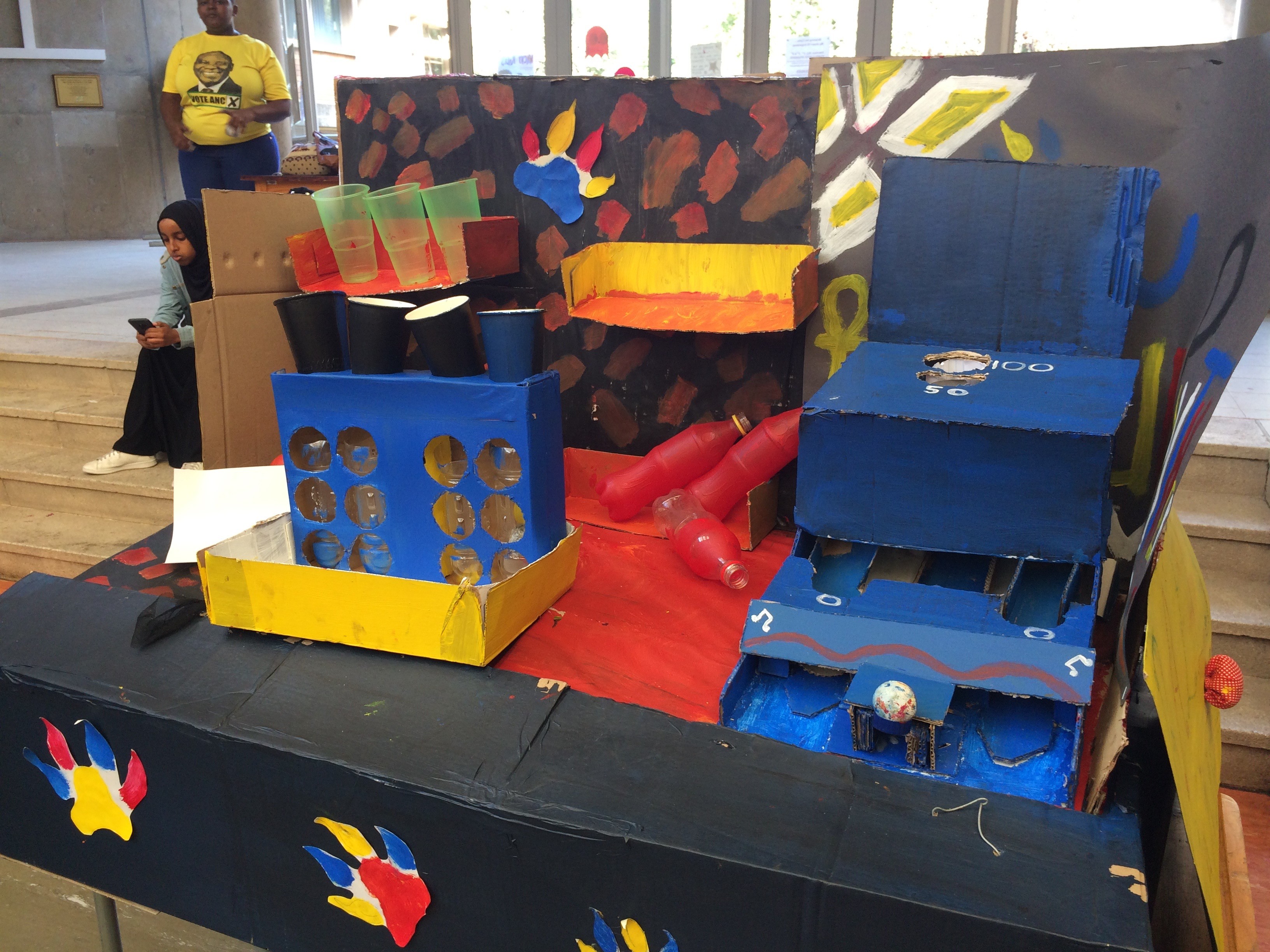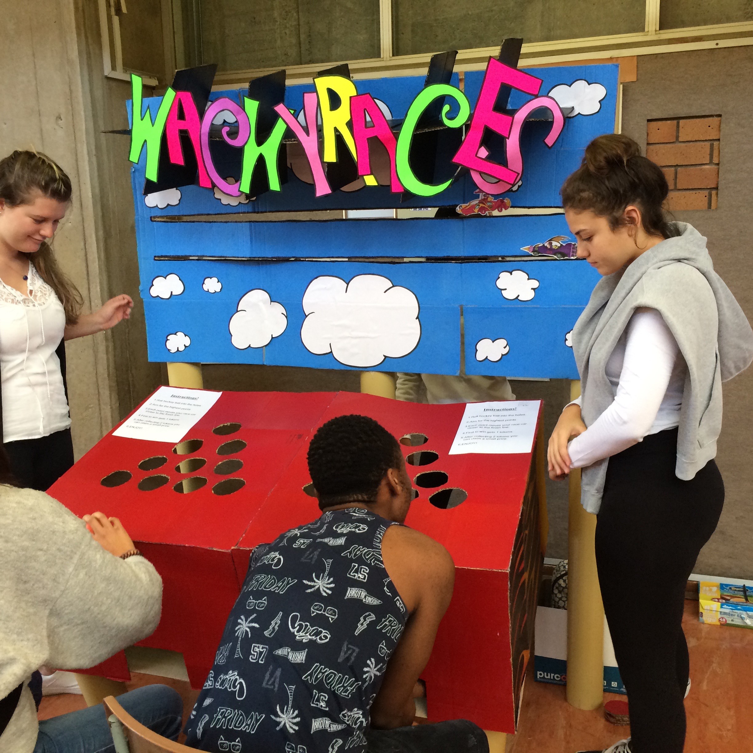 One of the challenges art teachers in South African schools face is a lack of arts materials. To inspire pre-service, arts-teachers-in-training to find creative solutions to keep their school learners making art, Prof. Alison Kearney developed a project wherein students worked in groups, to make working arcade games from waste materials. The project titled “Let the games begin!” was inspired by Caine’s Arcade. Among the assessment criteria were that the games had to have clear instructions for play, had to work (ie. be playable) and had to be aesthetically pleasing. The latter criterion required students to transform the materials through painting, sticking, and assemblage. At the end of the learning unit, we held a public games day, wherein all students, faculty and friends were invited to come play the arcade games. In requiring the arcade games to be aesthetically pleasing, they were considered as artworks, not only functional items: a good example of learning with and through artmaking.