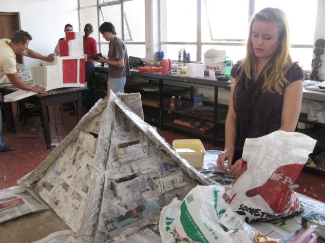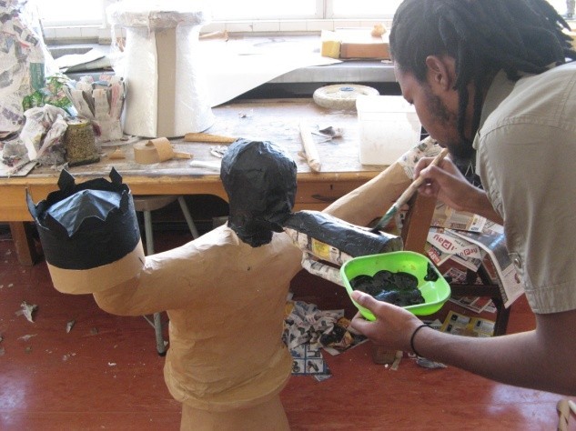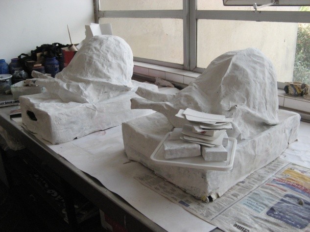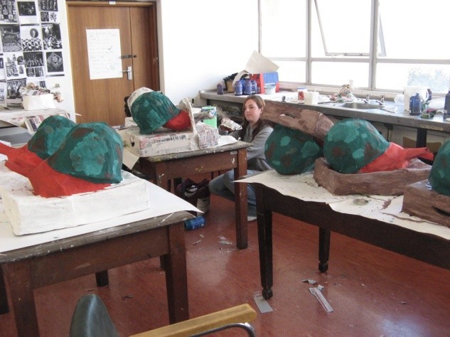 Chess was chosen because many of the pieces are multiples: providing a good reason for learning about casting. Students designed their pieces, with the goal of casting in mind, and then created multiples using papier maché, a material made from recycling paper, and easy to make in under-resourced schools. Students also had to learn how to play chess in preparation for the public unveiling, and ‘exhibition’ where we planned to hold a day of chess playing on campus.