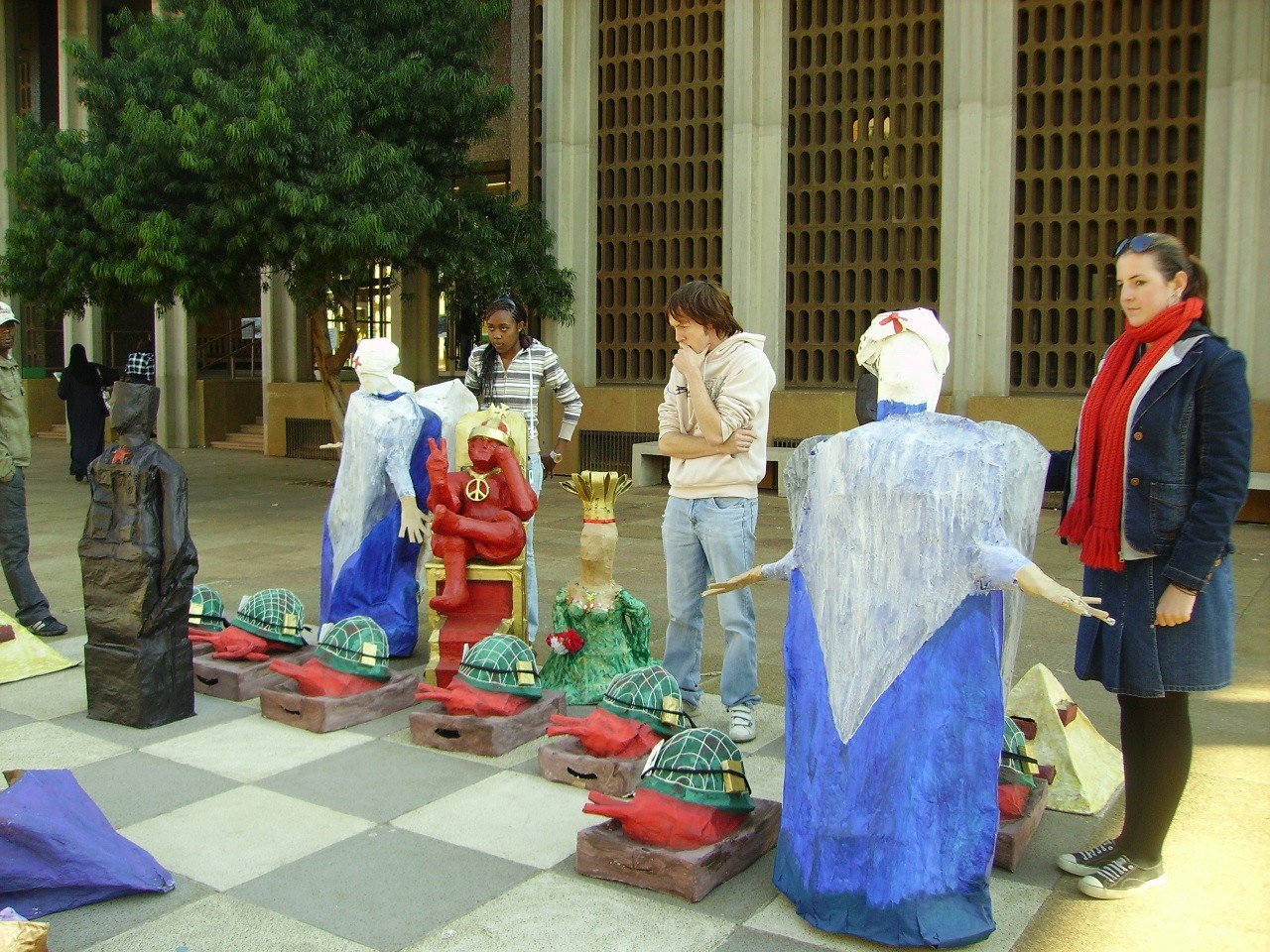 Opportunities to play while learning increase students’ engagement, joy, curiosity and creative thinking. With the goal of teaching pre-service arts-teachers about the principles of casting and making multiples in sculpture, while also being mindful that the schools the students are likely to teach in would not have sophisticated materials for sculpture making, Prof Alison Kearney designed a project wherein students were required to make giant chess pieces so that we could play chess on campus.