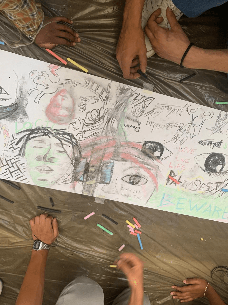 This course employed principles of situated learning, in which students learn by doing and authentic problems emerge in the doing. Situated learning is rooted in constructivist theories of learning which acknowledge that learning abstract concepts cannot be separated from the situations in which they occur, but rather that learning is most effective when contextualised in authentic situations (Brown, Collins, & Duguid, 1989; Davis, 2004; Pitri, 2004). Applied to our project, the social and physical contexts that co-produced knowledge included the relationships and life experiences of our participants; the contexts of the school campus, the studio/workshop and the places from which the participants came.