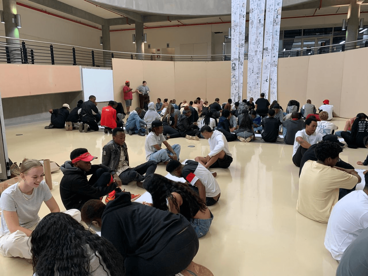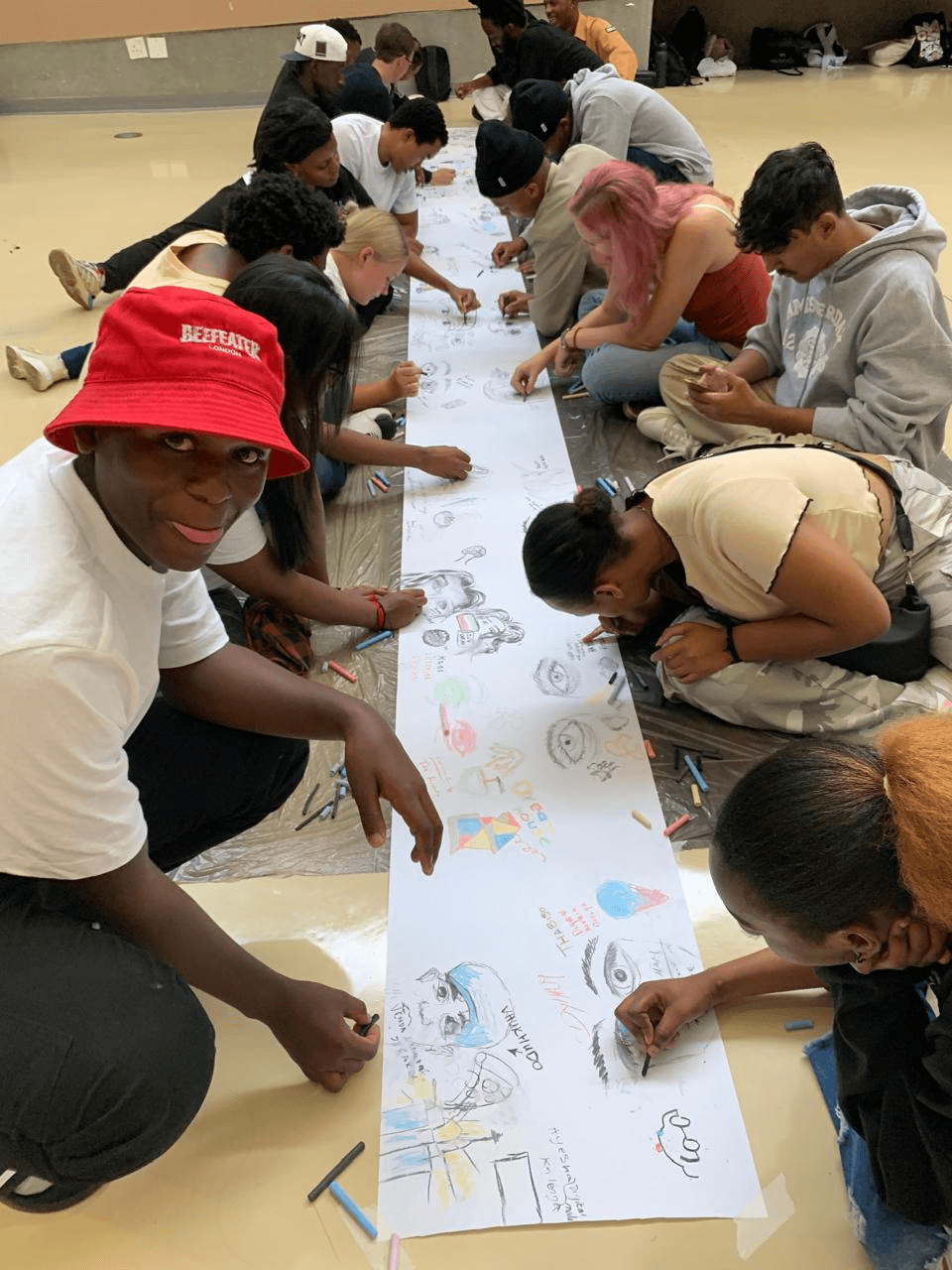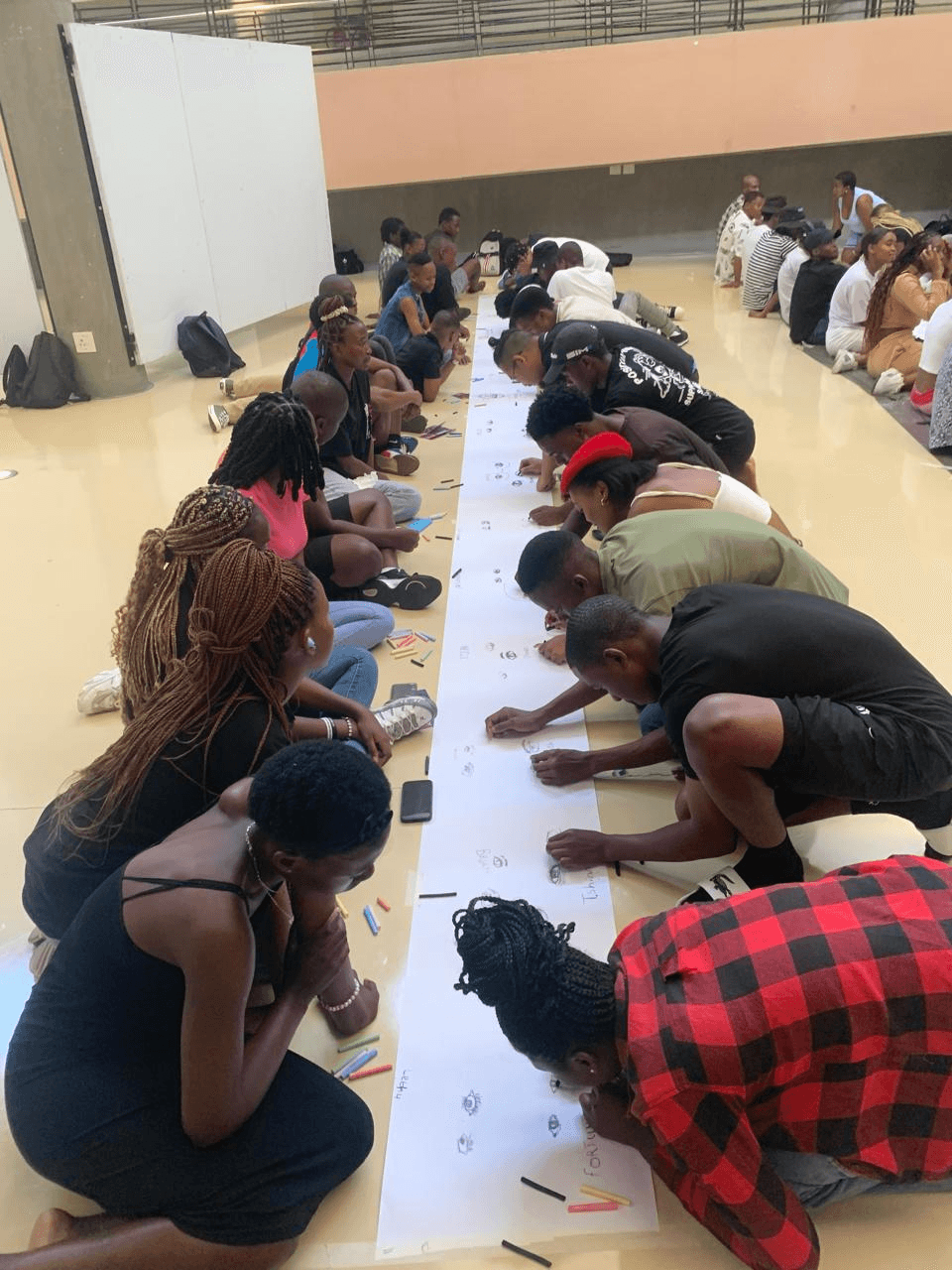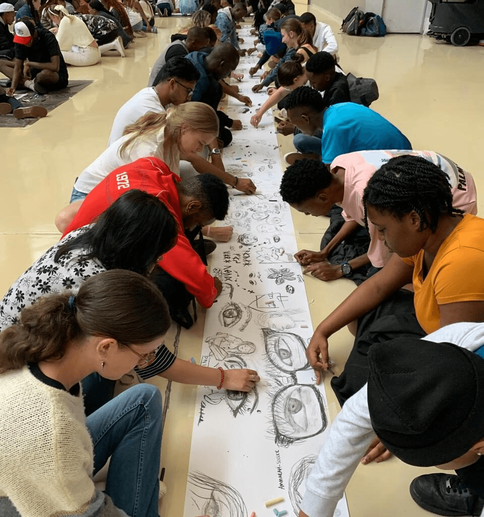 By creating opportunities for experimentation, playfulness, and being open to the unexpected, led to students building trust amongst each other. Further, by asking students to create something challenging together across disciplines, students were made to collaborate outside of the (uncomfortable) comfort zones, which helped students develop a sense of place and new possibilities of working outside disciplinary frames (Perold et al, 2015). This newfound sense of belonging was cemented by sharing their work with the rest of the faculty through placing the 130 metres of drawings in a prominent space in the faculty building for the first few weeks of term. Through exhibiting the drawings, the first years’ presence was visually, and physically reinforced, making use of the power of the visual to transform and create inclusive spaces (Costandius, 2021). The paper concludes with a critical discussion on the lessons learnt from this orientation workshop that could be transposed/ applied in various other teaching contexts. We reflect on the ways in which the activities in the workshop and the process of sharing the students’ work with the broader faculty community contributed to the students’ sense of belonging.