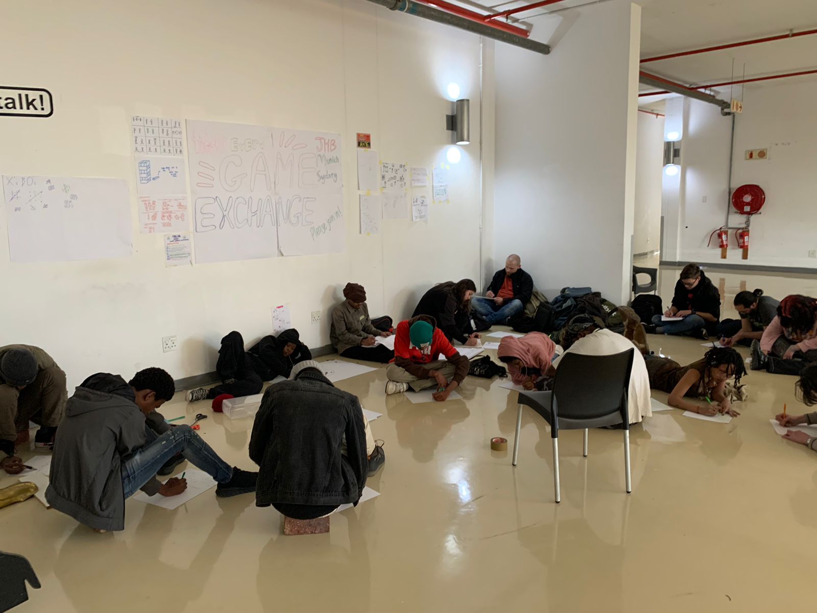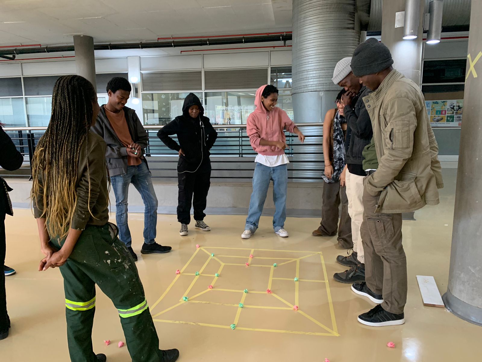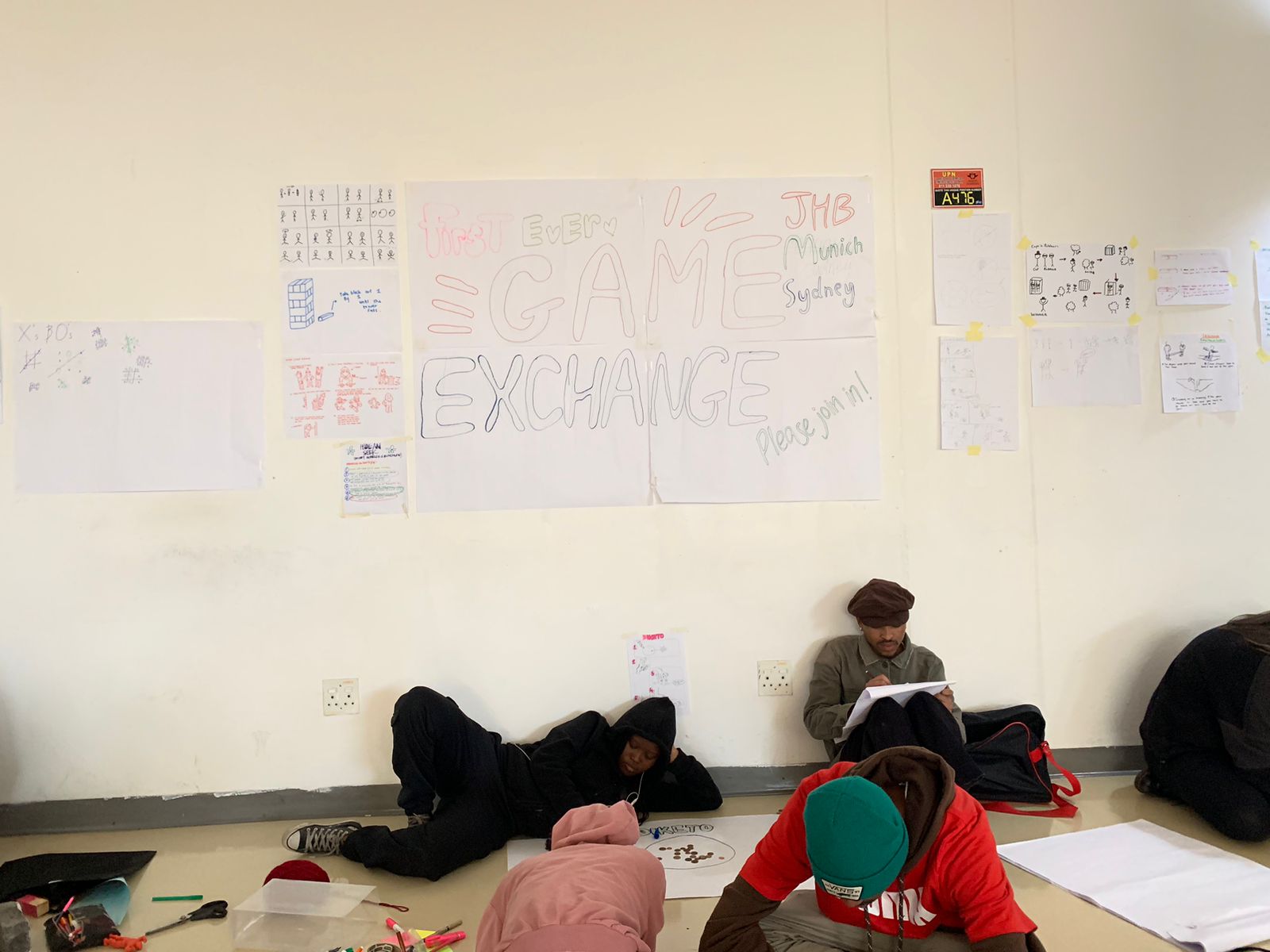 Always looking for novel and generative ways to explore shared and diverse cultural practices, Prof. Alison Kearney (JHB) collaborated with Ms. Tina Keck (Munich) and Dr Michaela Almog (Munich) to initiate an international Game Exchange between our students. Each of us asked our students to reflect on the games they played with other kids when they were young. Participating students were asked to draw the instructions for their games. We then shared all the instructions for the games across institutions. This was followed by a day of playing each other’s’ games. The event was great fun, and an opportunity for students to learn about each other, and shared cultural practices across continents. We learnt that the games we played reveal a lot about the prominent socio-cultural ideas of the time. The materials used to play the games showed how innovative and inventive kids are- even when all they have, to play with, are sticks and stones. We found more connections amongst us then differences, and discovered that culture is lived, and played. These are images of students in Johannesburg playing their games.