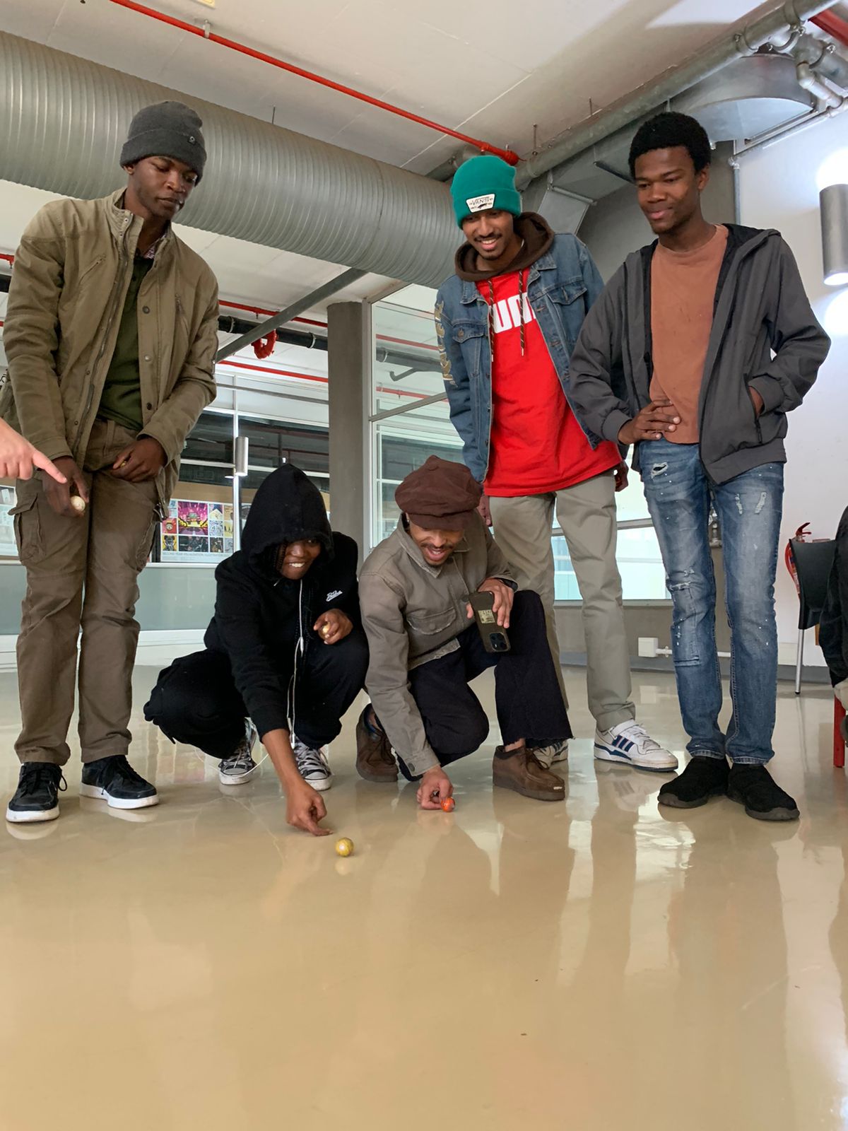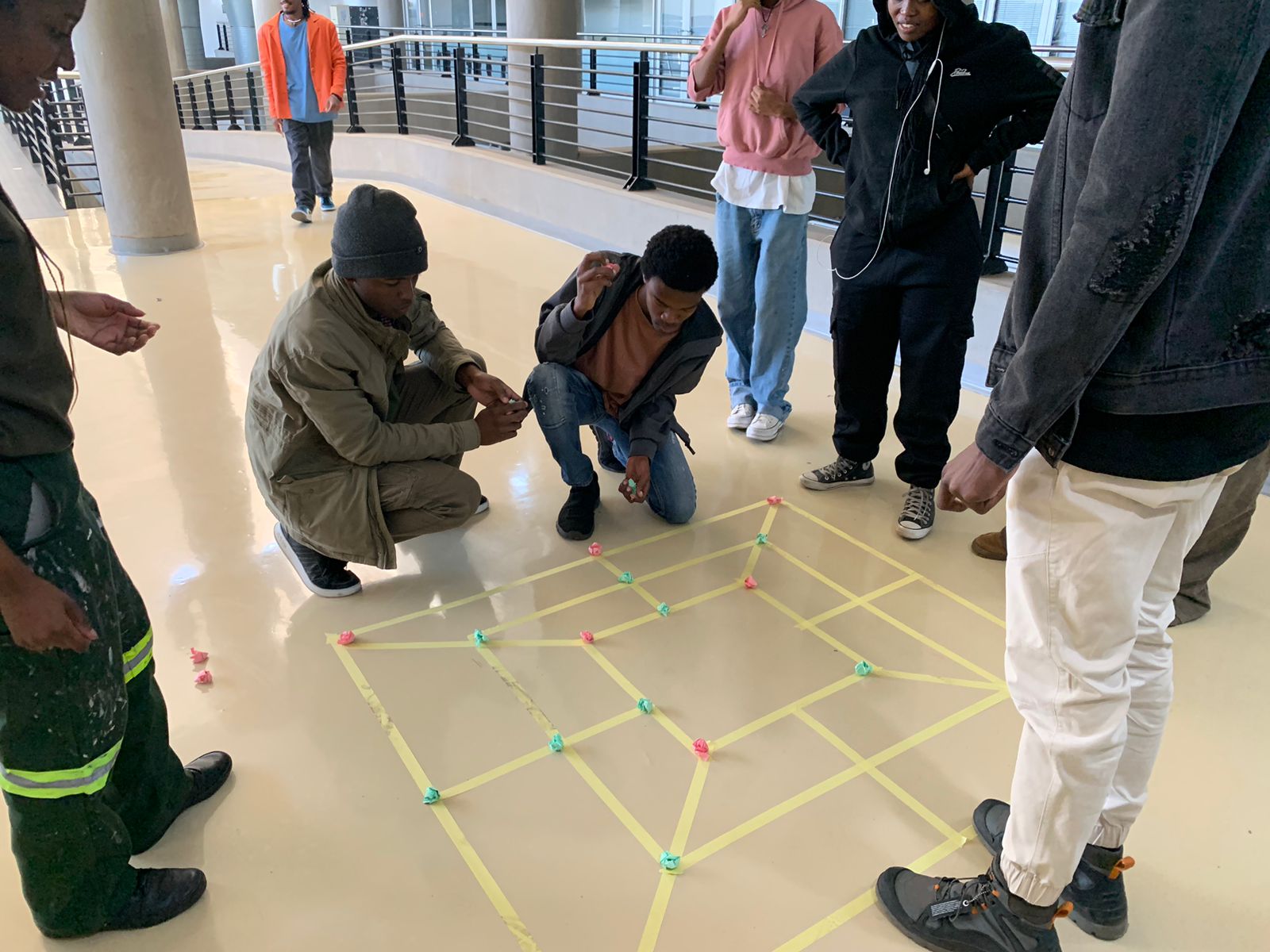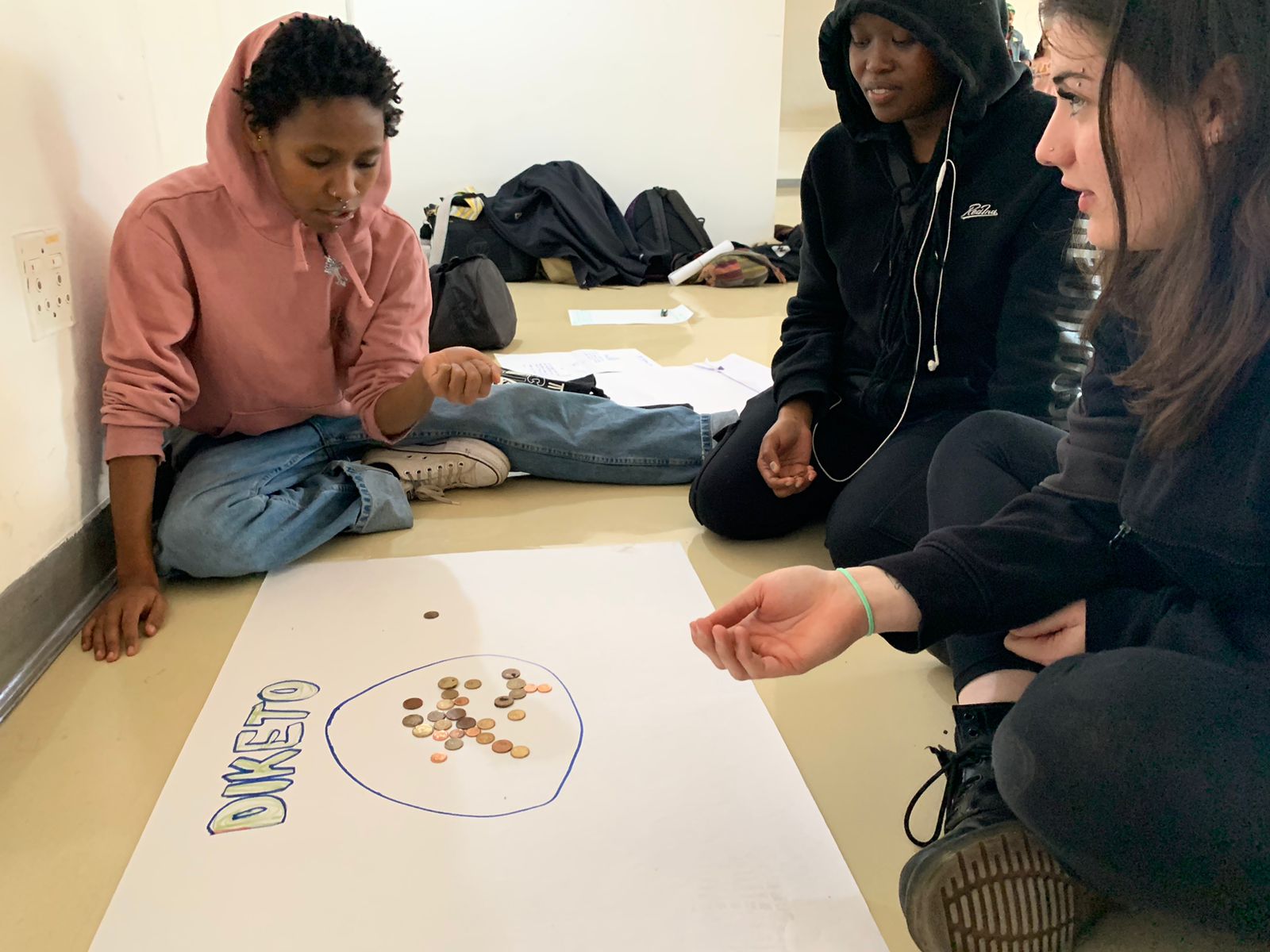 Always looking for novel and generative ways to explore shared and diverse cultural practices, Prof. Alison Kearney (JHB) collaborated with Ms. Tina Keck (Munich) and Dr Michaela Almog (Munich) to initiate an international Game Exchange between our students. Each of us asked our students to reflect on the games they played with other kids when they were young. Participating students were asked to draw the instructions for their games. We then shared all the instructions for the games across institutions. This was followed by a day of playing each other’s’ games. The event was great fun, and an opportunity for students to learn about each other, and shared cultural practices across continents. We learnt that the games we played reveal a lot about the prominent socio-cultural ideas of the time. The materials used to play the games showed how innovative and inventive kids are- even when all they have, to play with, are sticks and stones. We found more connections amongst us then differences, and discovered that culture is lived, and played. These are images of students in Johannesburg playing their games.